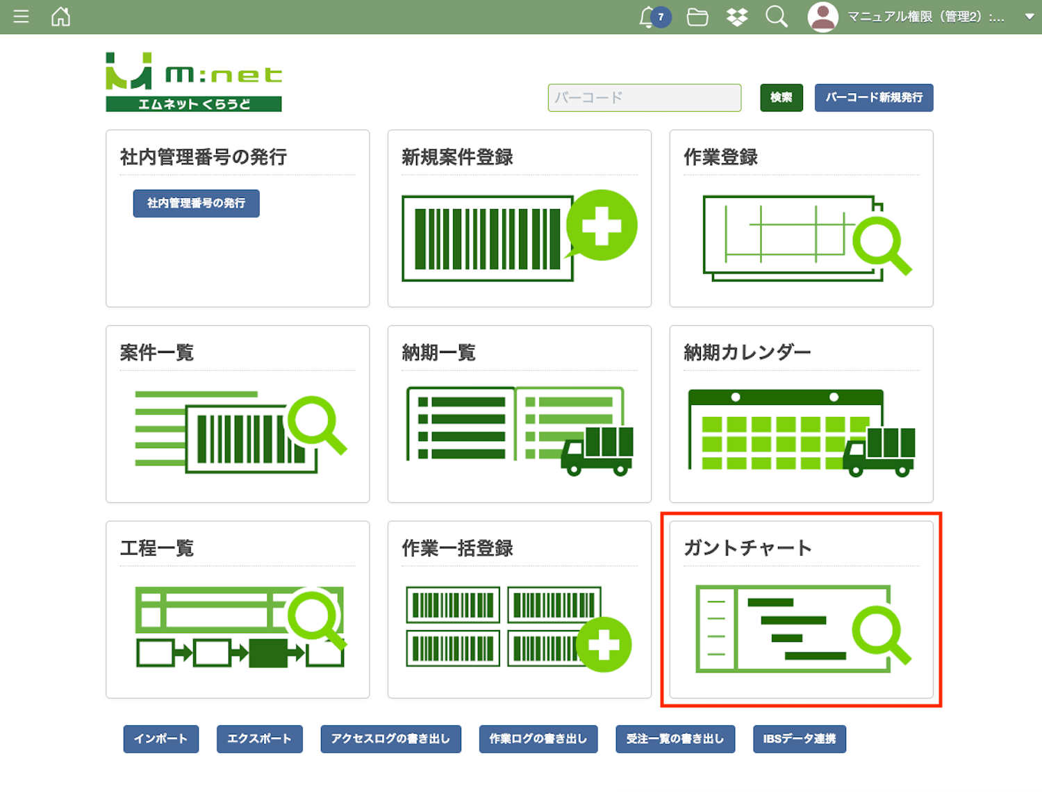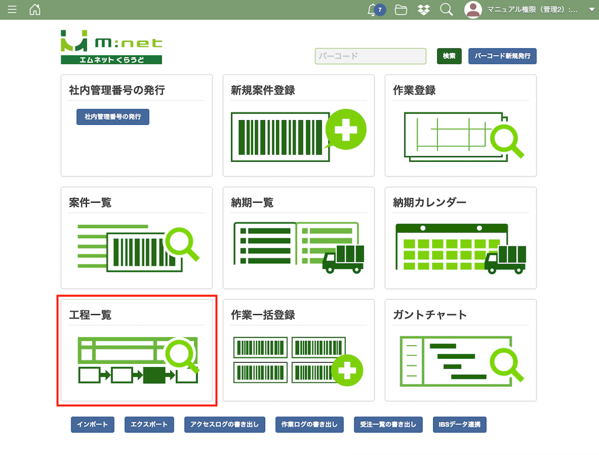 メニュー画面から「工程一覧」を押して工程一覧画面を開きます。