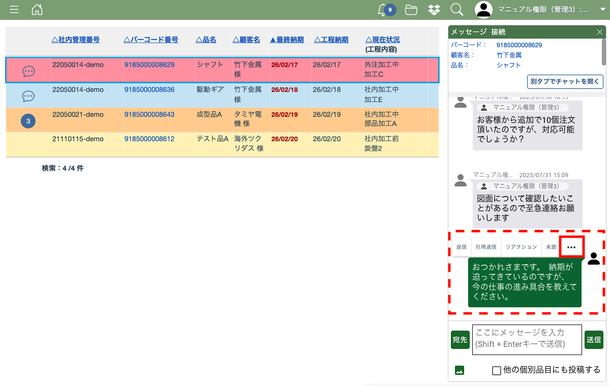 案件一覧のページなどから、消したいメッセージのあるチャットを開きます。