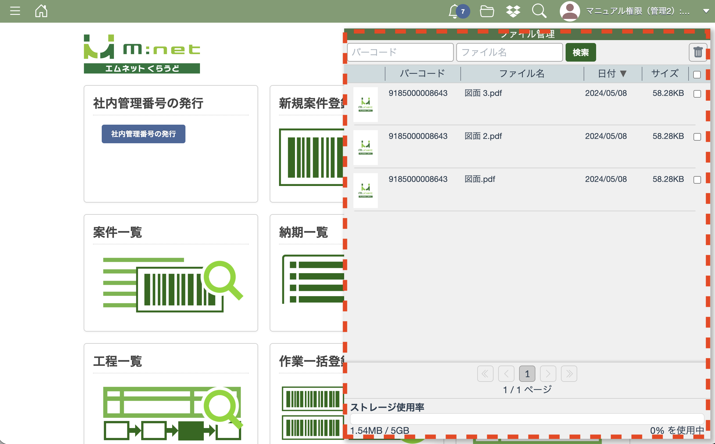 ファイルはバーコードまたはファイル名で検索することができます。