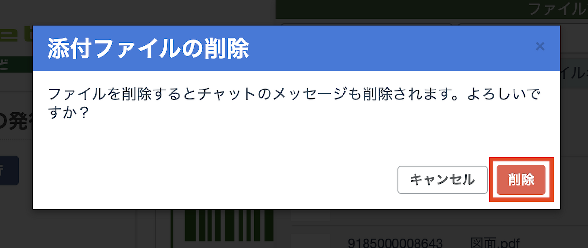 • ファイルを削除するとチャットのメッセージも削除されますのでご注意ください。