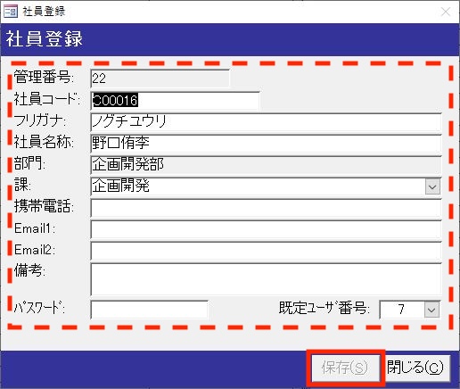入力が完了したら保存ボタンを押して閉じてください。