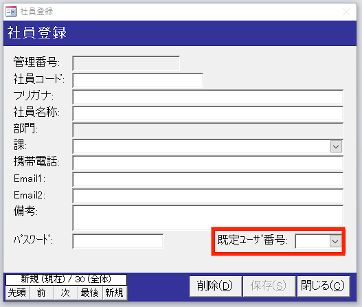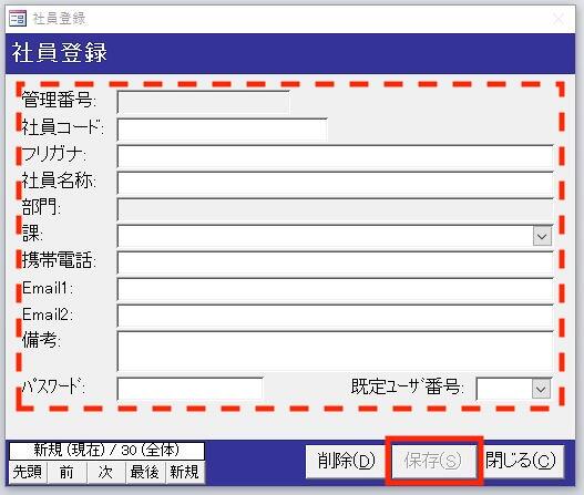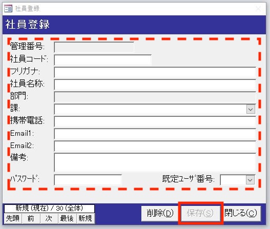 5)社員登録画面が表示されるので必要な情報を入力してください。