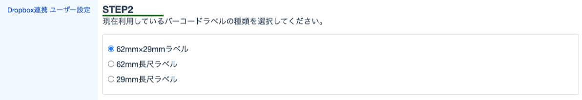 STEP2の手順で、作成したいバーコードのラベルを選択します。選べるラベルは以下の3種類です。実際にお使いのラベルを選択してください。