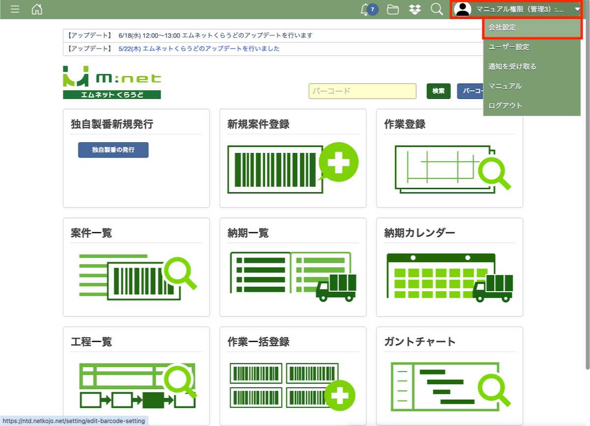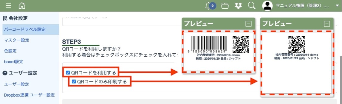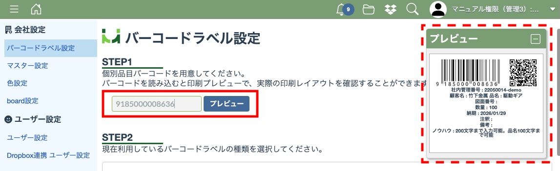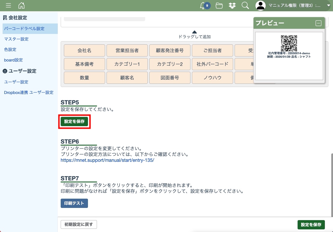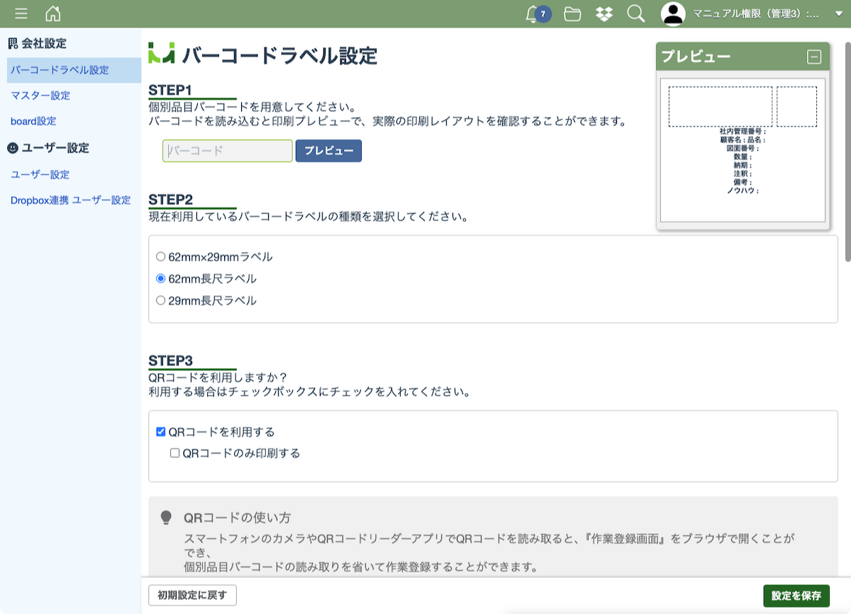 バーコードラベル設定は、編集権限のあるユーザーのみ設定できます。