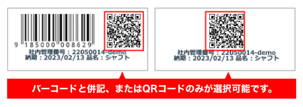 「QRコードを利用する」の項目にチェックを入れるとバーコードの横にQRコードを並べて印刷できます。