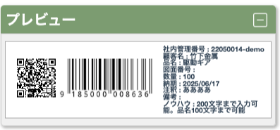 ラベルを選択するとプレビュー欄のバーコードに反映されます。