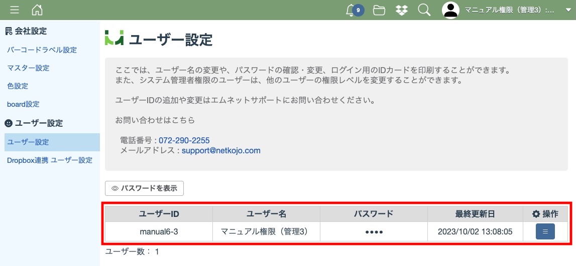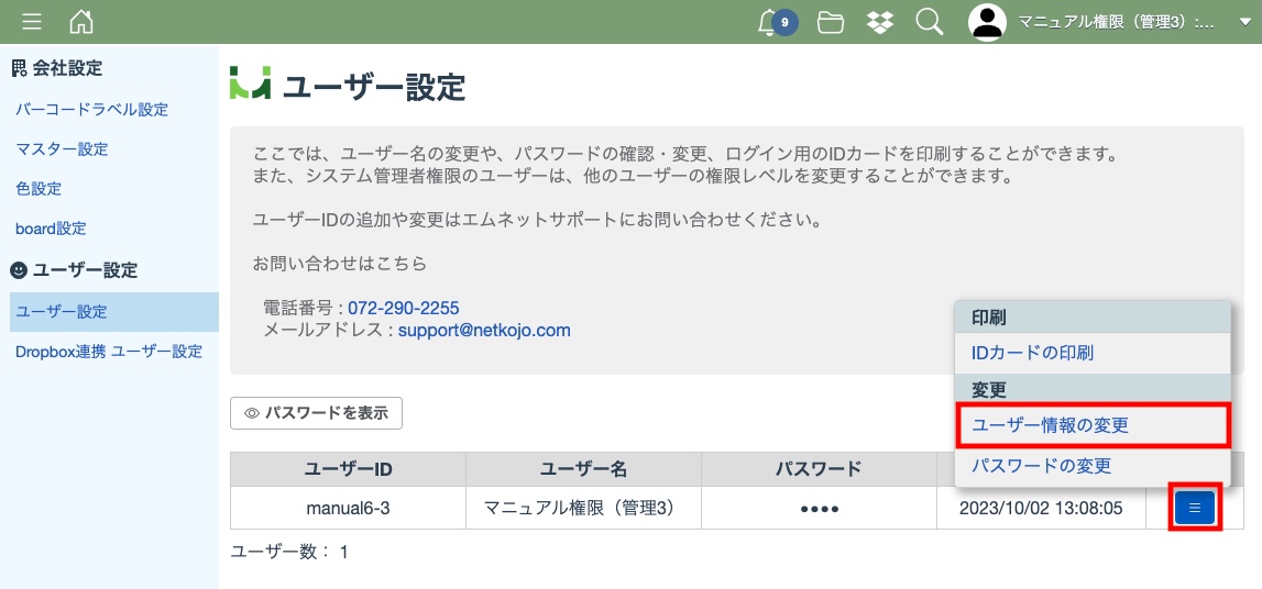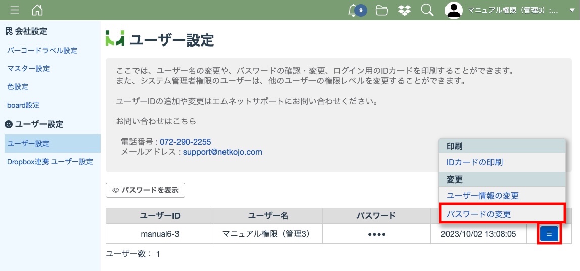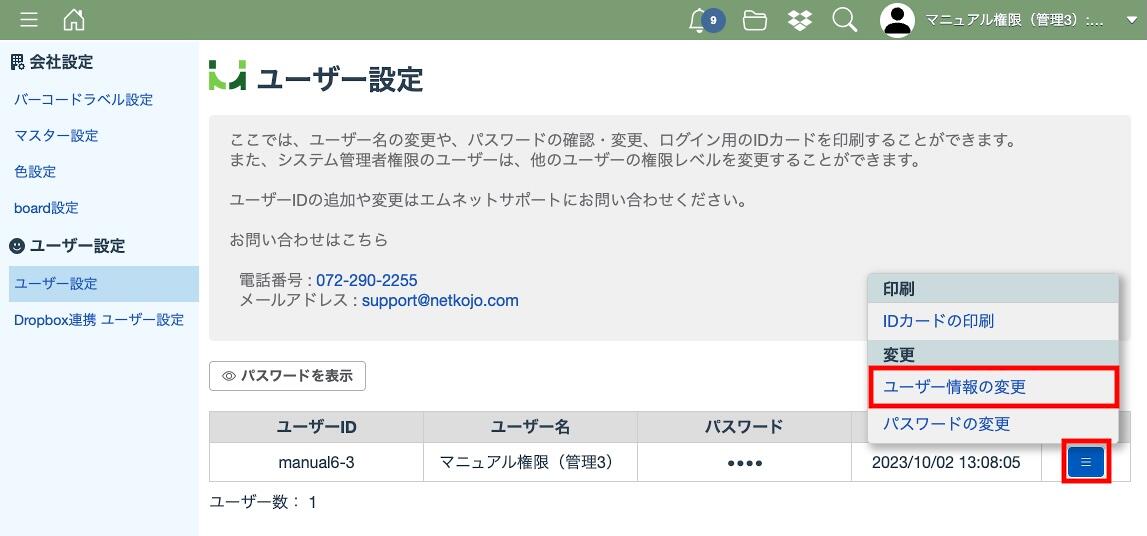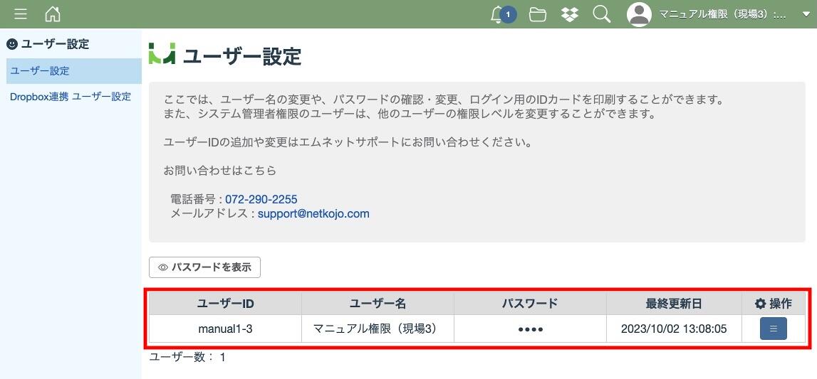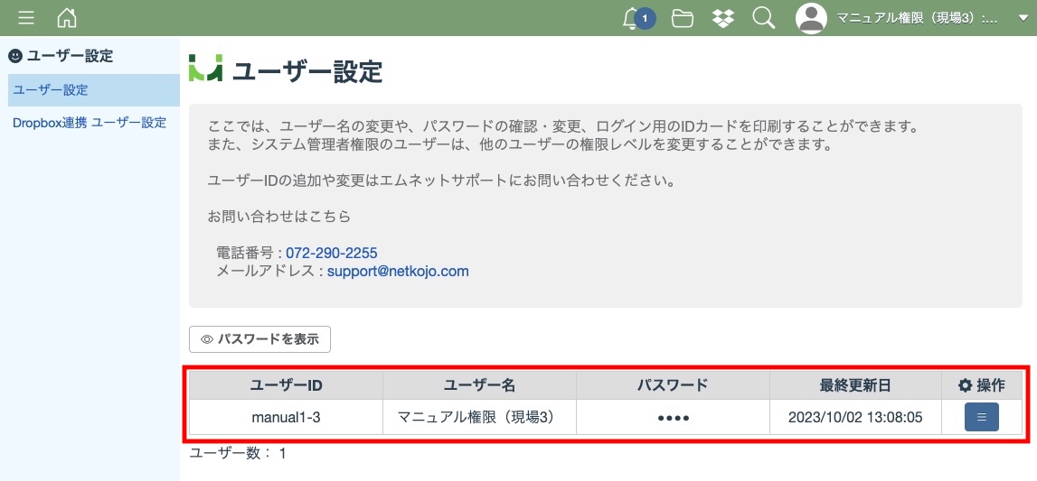 また、新規ユーザーIDの追加及びユーザーID自体の変更をする場合もサポートにお問い合わせください。