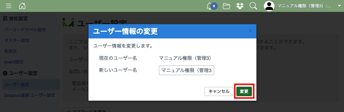 ユーザー情報の変更