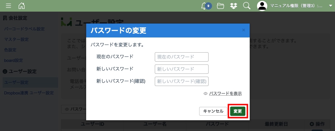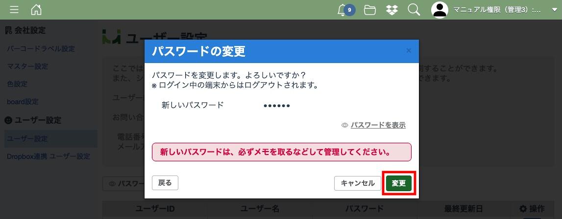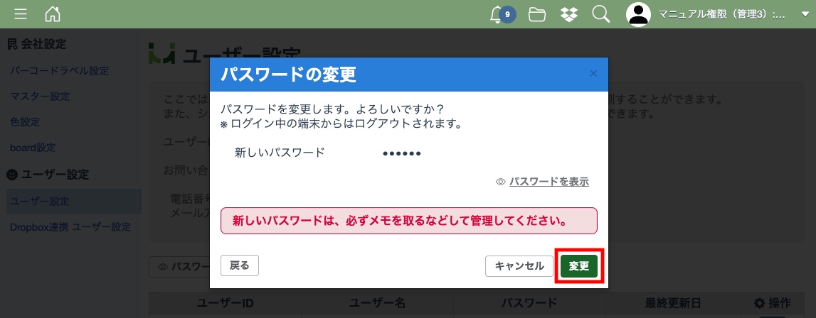 パスワードの変更