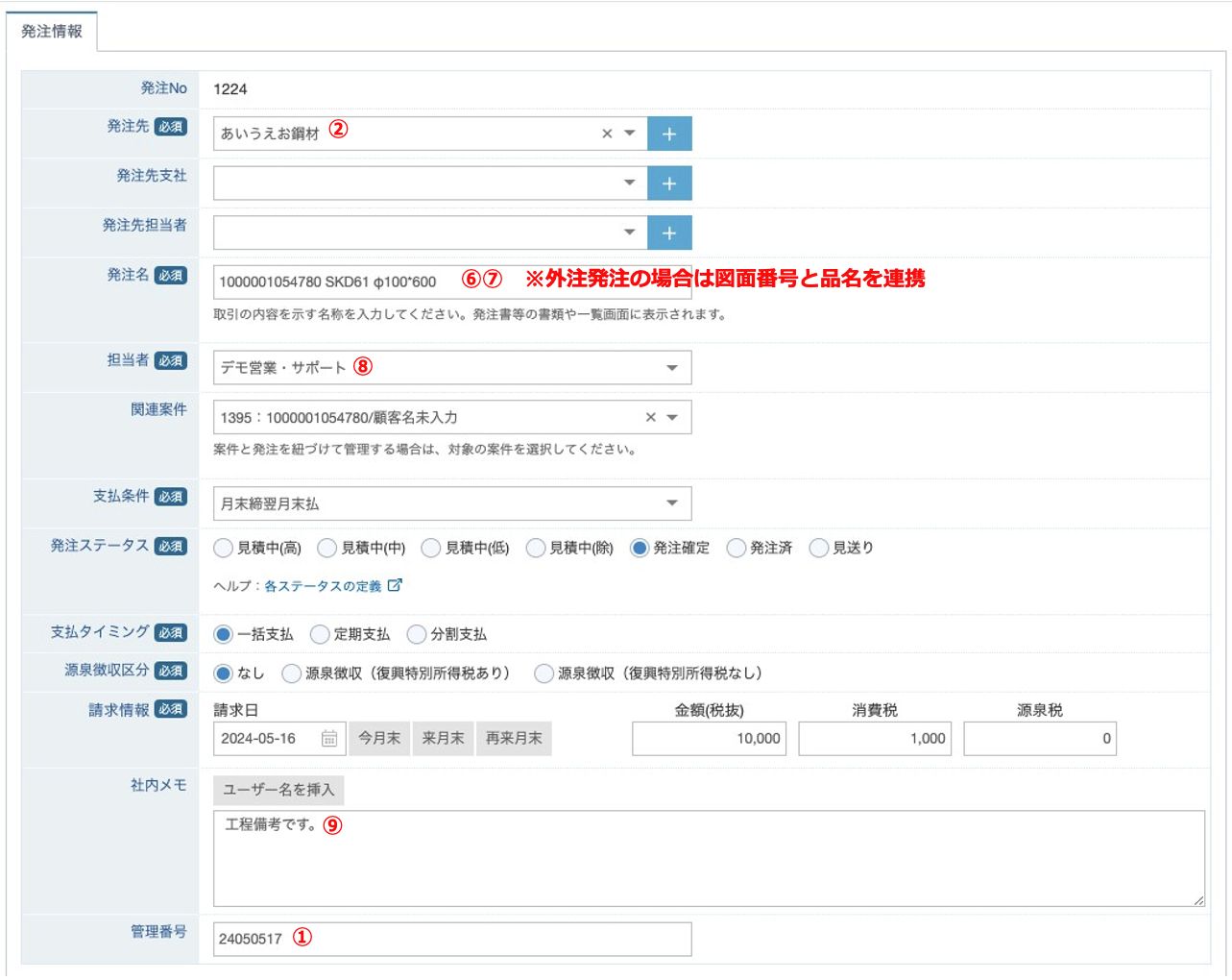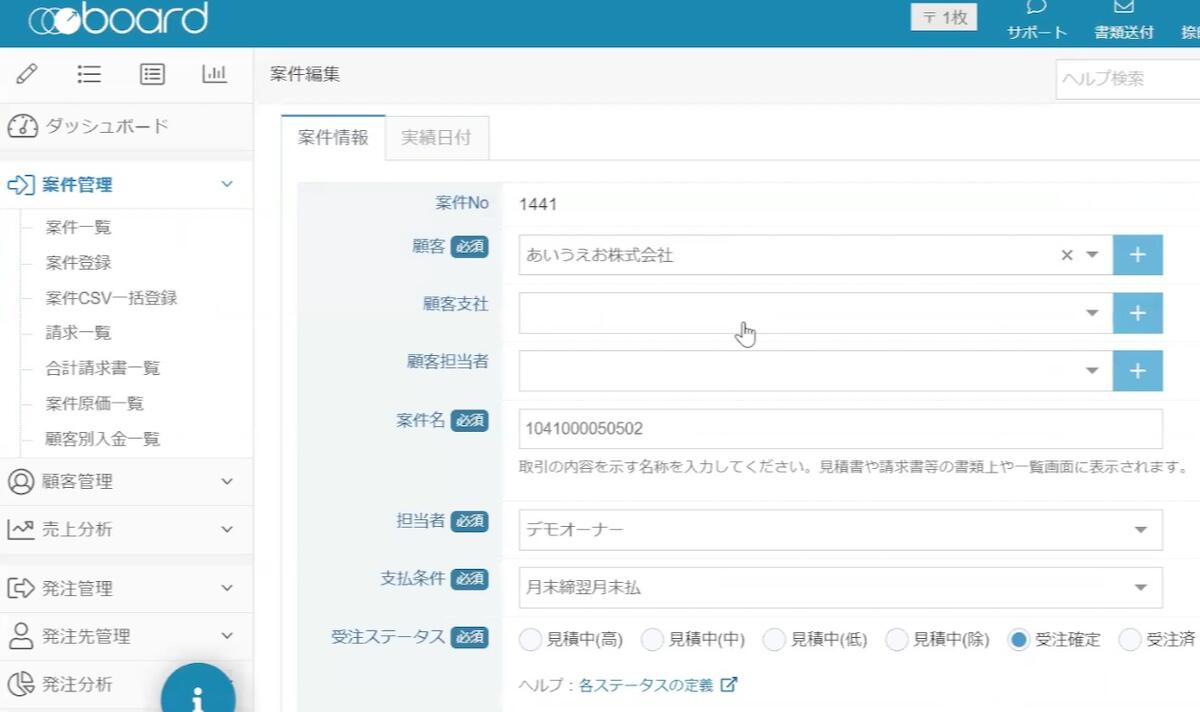 エムネットくらうどとboardを連携することでエムネットくらうどで登録した案件情報を元に請求書や発注書を作成できるようになります。