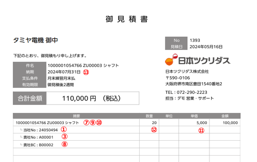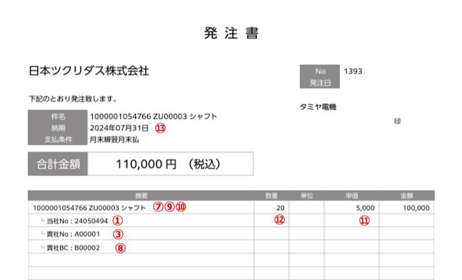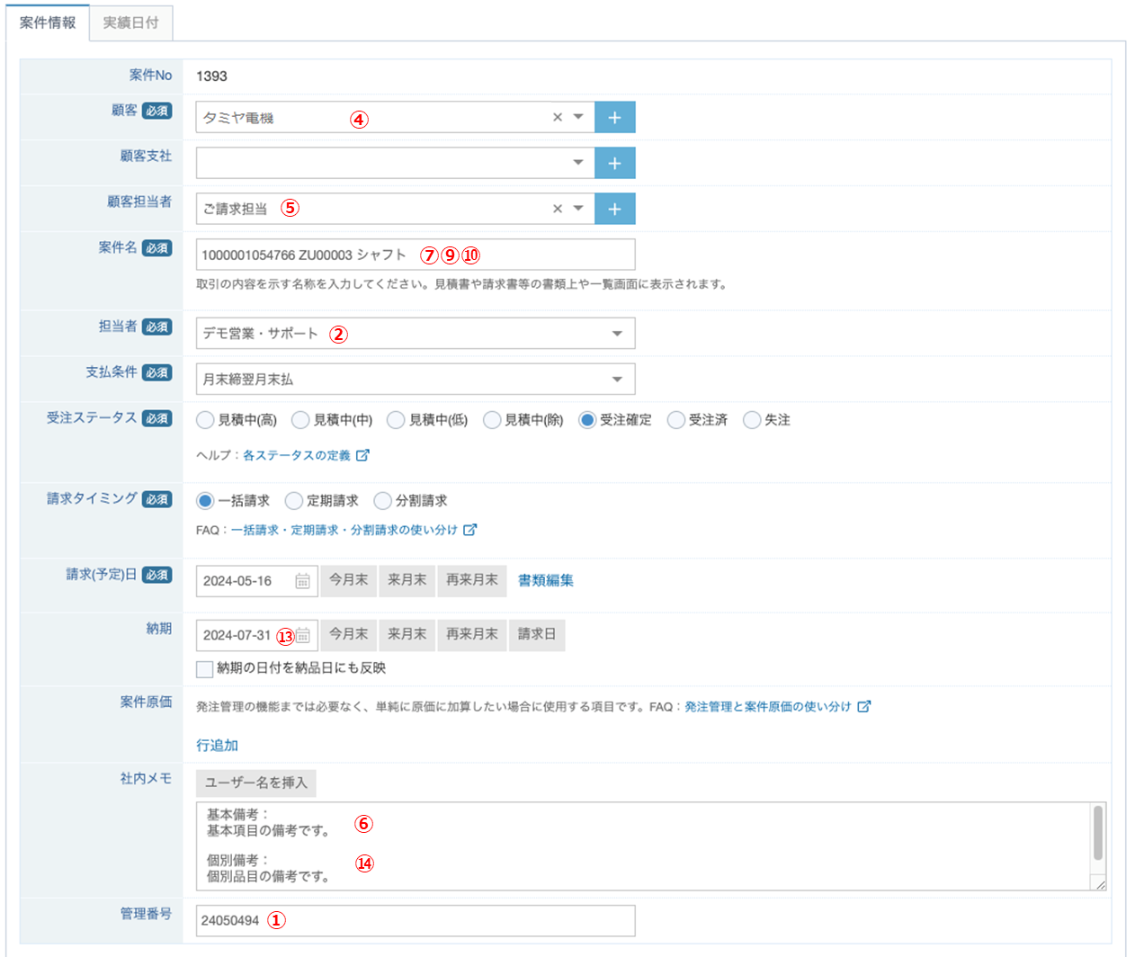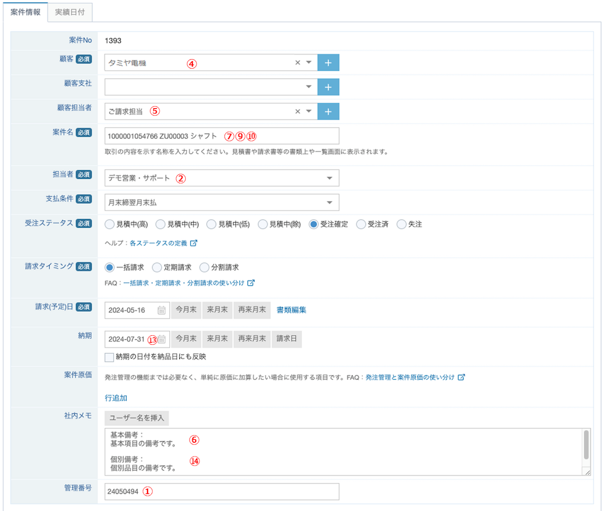 選択を行うことでエムネットくらうどで登録されている項目を摘要に記載できるようになります。