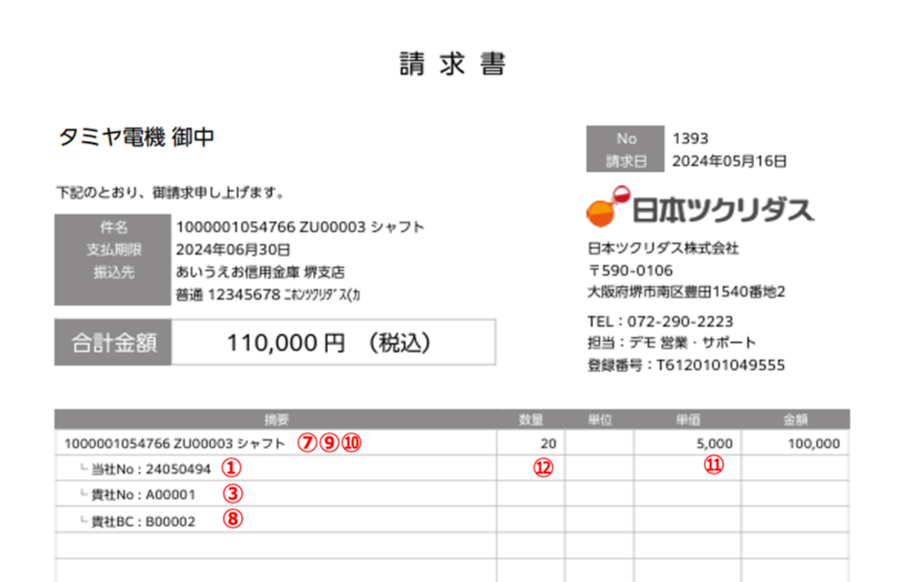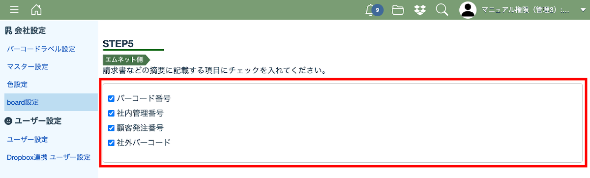 STEP4で請求書などの摘要に記載する項目にチェックを入れてください。