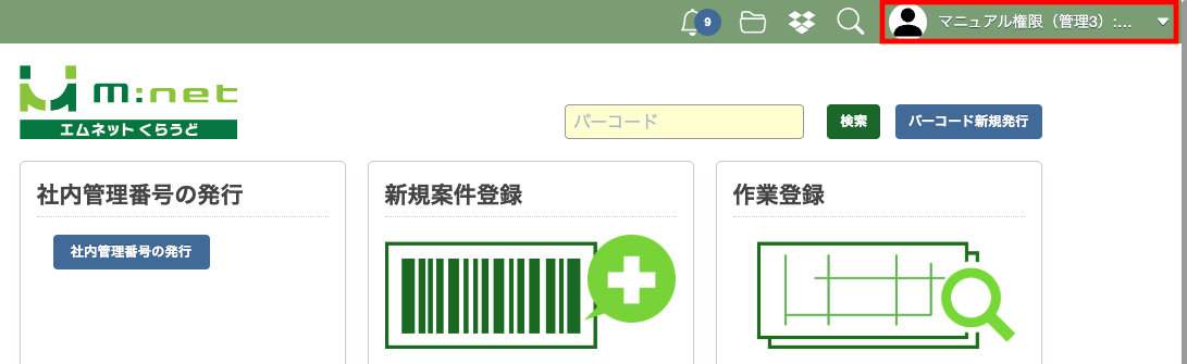 メニュー画面を開き、画面右上のユーザー名にカーソルを合わせてください。
