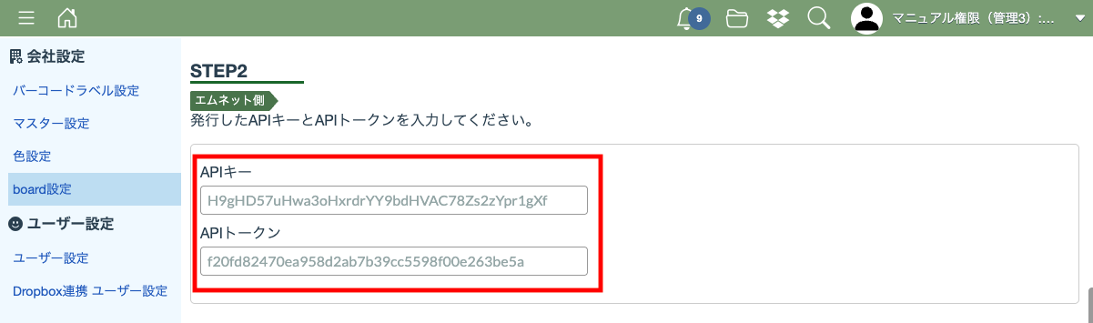 boardで取得したAPIキーとAPIトークンをSTEP2の入力欄に入力してください。