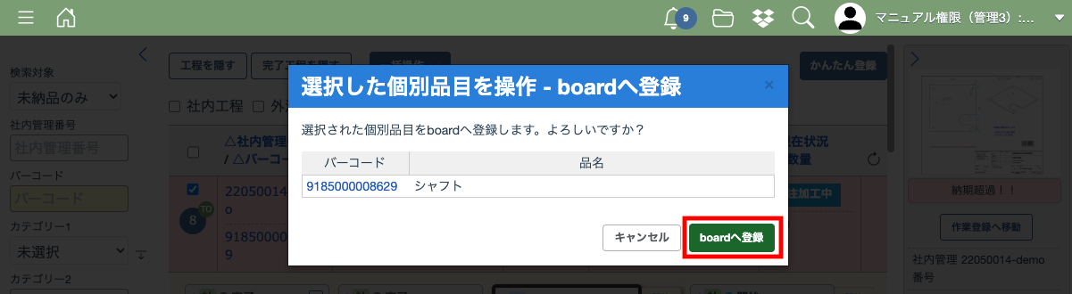確認のダイアログボックスが表示されますので問題がなければ「boardへ登録」ボタンを押してください。