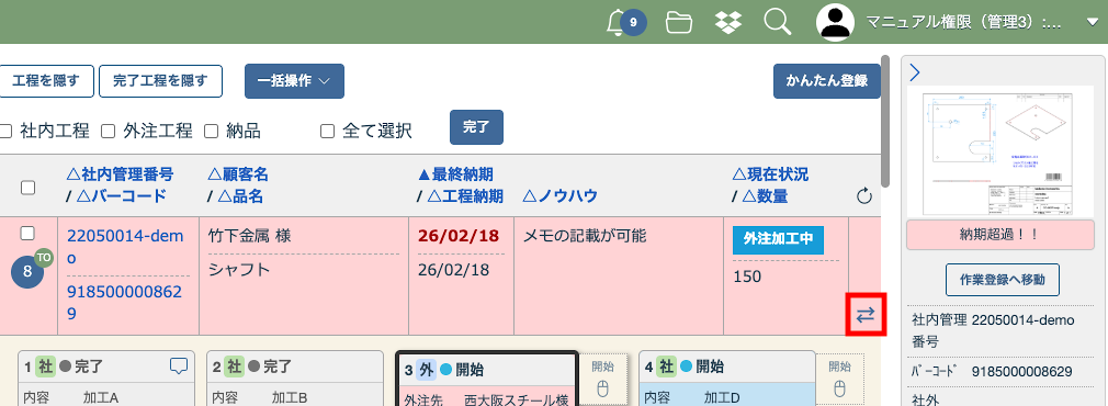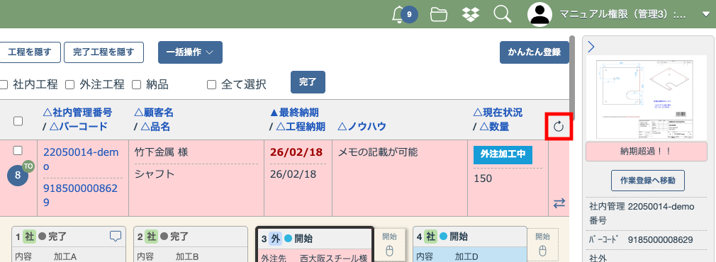工程一覧の画面に戻ったらboard連携の状態を更新します。