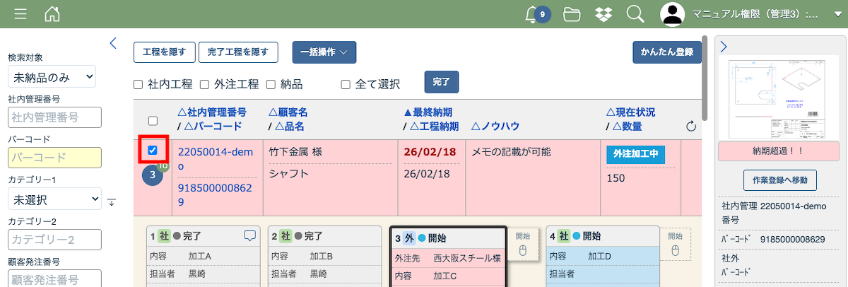 工程一覧ページからboardに登録したい案件にチェックを入れてください。