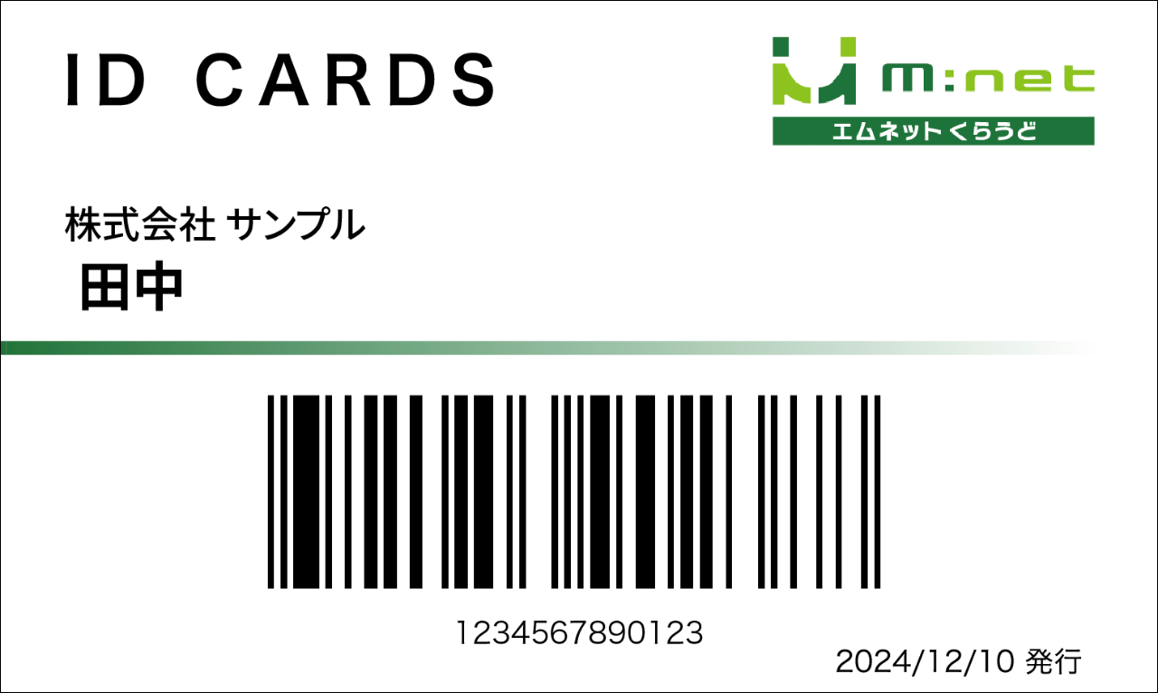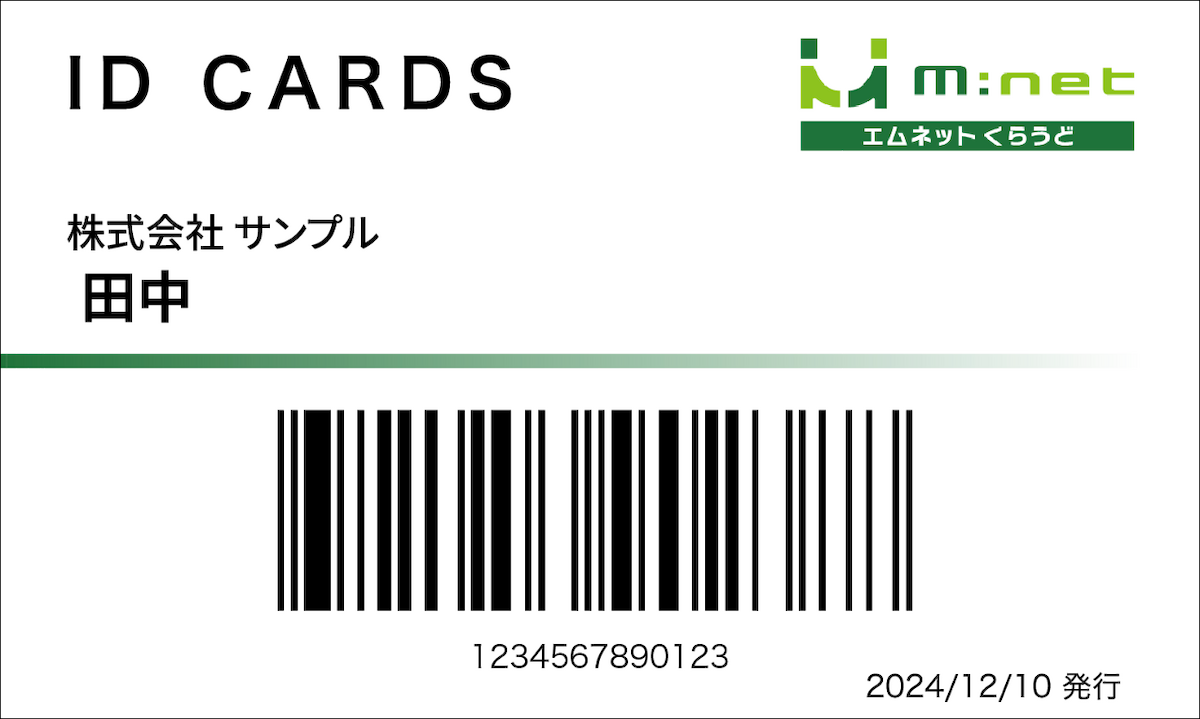 パーソナルユーザーIDカードは「エムネットくらうどにログインするためのID」であり、作業登録で使用する担当者バーコードとは異なります。