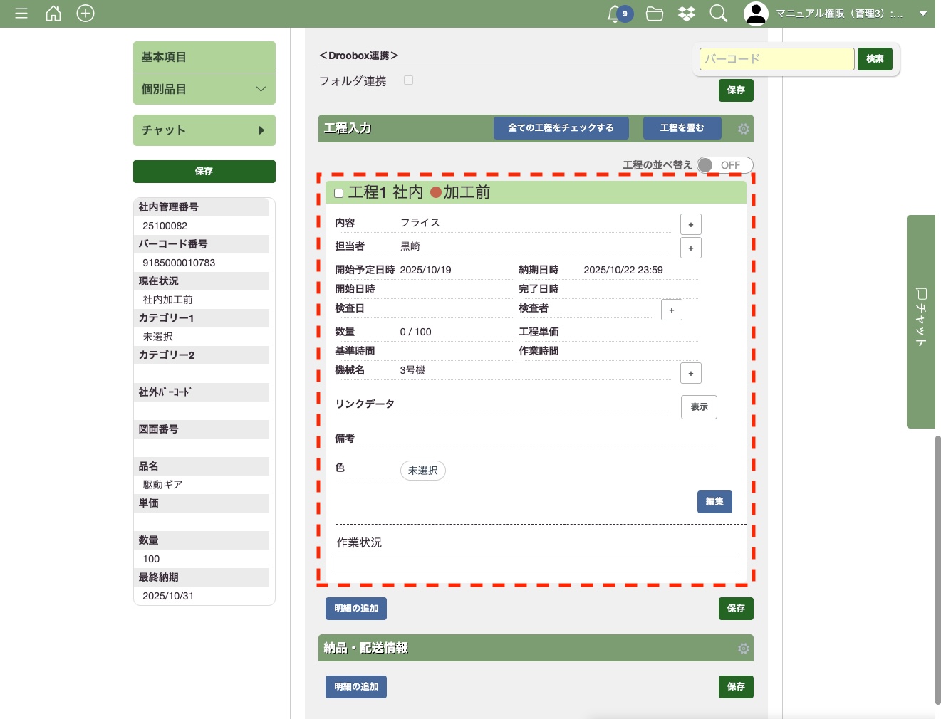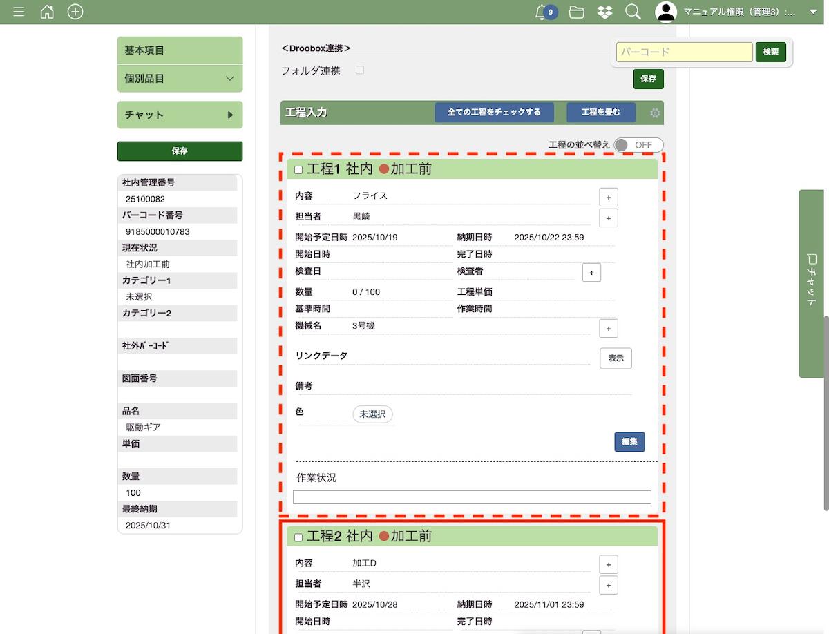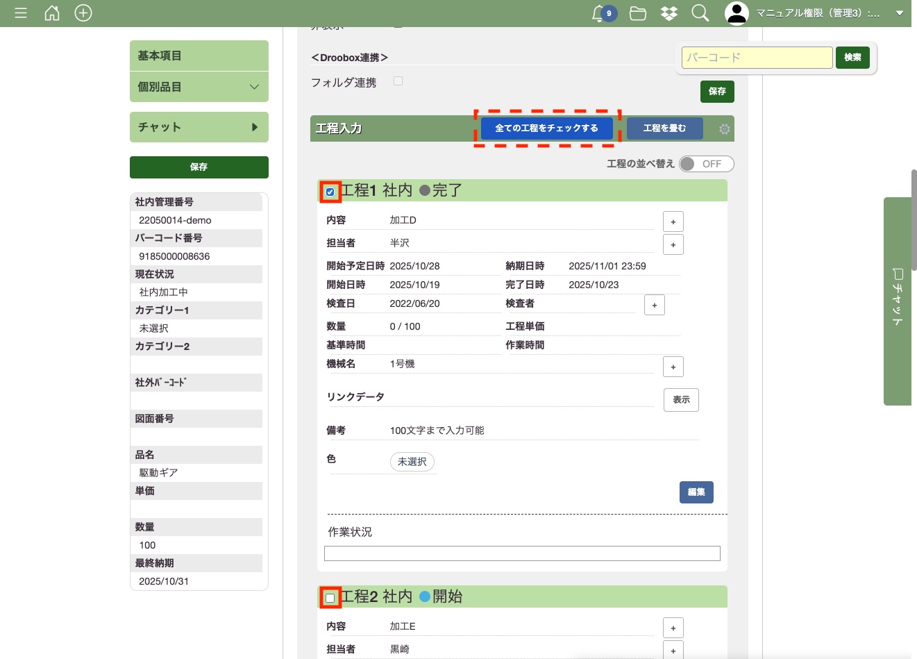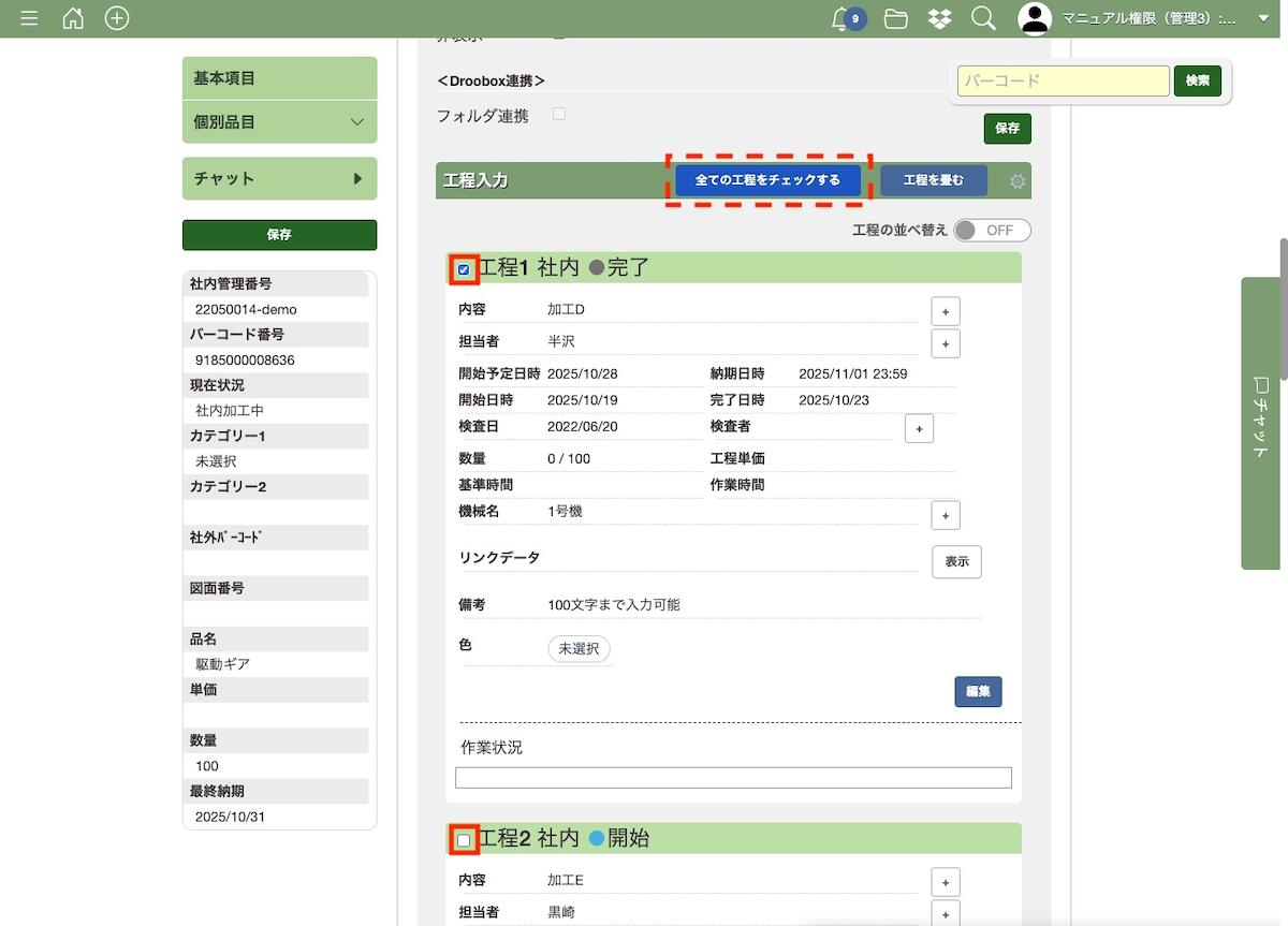 「全ての工程をチェックする」ボタンを押すと、全ての工程のチェックボックスを一括でチェックすることができます。